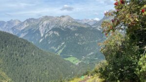 Der Weg dahin war durchgängig ein schöner Pfad, ohne besondere Schwierigkeiten, aber auch durchgängig ziemlich steil bergauf. Zum Glück sind die Berge südlich von Klösterle nicht mehr aus Kalkstein, sondern aus Gneis. Glück deshalb, weil sie nicht an jeder Quelle zu glitschigem Kreideschlamm werden, sondern zu durchaus immer noch griffigem nassen Sand.