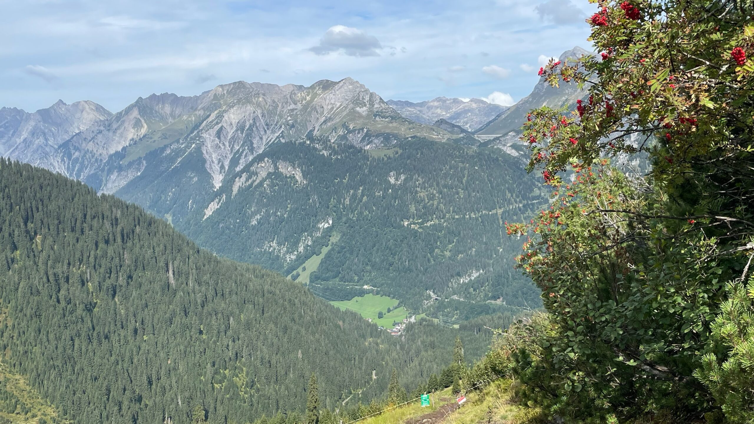 In Klösterle hatten wir ein renoviertes Zimmer in einem noch nicht fertig renovierten Haus, allerdings ohne Frühstück. Wir besorgten uns also je ein Brötchen und ein Stückchen Kuchen beim Bäcker; Britta holte noch zwei Bananen aus dem Spar und ich neues Bargeld aus der Bank: Zu Mittag wollten wir in der Reutlinger Hütte, an der heutigen Passhöhe oder auch 1300 m über uns einkehren.
