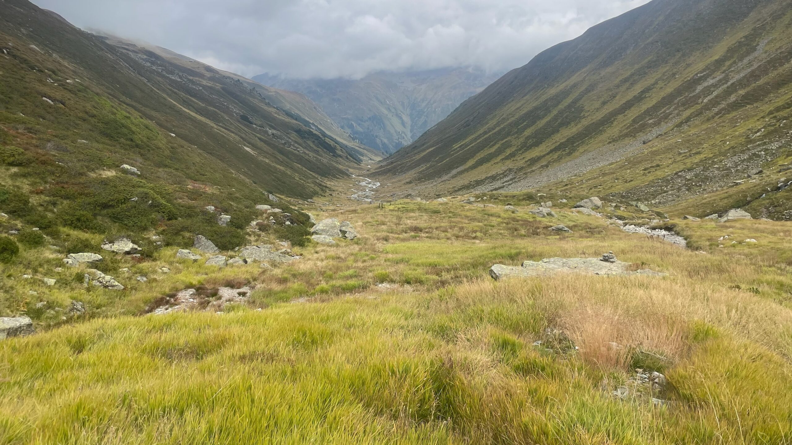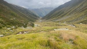 Weiter unten im wunderbar unberührten, tundraartigen Pflunbachtal trafen wir noch ein Murmeltier, dass uns nicht gesehen hatte oder dem wir egal waren 🐹😍. Das Tal ist wunderschön, allerdings ist das dem zügigen Vorankommen nicht so förderlich, auch muss der Pflunbach öfters überfurtet werden.