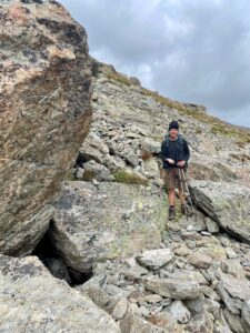 Nach ziemlich laaangem Steigen, inzwischen auch schon durch Felsengebiet erreichten wir die Reutlinger Hütte, die zu unserem Erstaunen offen und mit Menschen bevölkert war: Eine Wanderergruppe aus Schwaben, mit der Gemeinsamkeit, dass sie alle Zeugen Jehovas sind! Wir wurden sehr nett begrüßt und nach einem kleinen Plaudern wurde uns Tee und Suppe, die sie „nicht wieder mit runter tragen wollten“ angeboten. Entsprechend unserer Vorratslage ein Angebot, das wir nicht ablehnen konnten. 🫵🏼