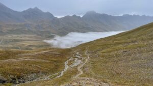 Steil bergab vom Pass wurden wir von einem Paar auf Mountainbikes überholt, immerhin sahen sie aus, als hätten sie Spaß. Mountainbiker, halte ich fest, haben einige Gemeinsamkeiten mit Kühen: sie zerschlammen die Wege, Wanderer müssen ihnen ausweichen.