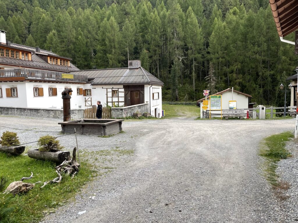 Zum Glück blieben wir auf unserem Weg von allen Katastrophen verschont. Stattdessen entdeckten wir unterwegs unter einer Plane zwei riesige Schlitten, die aussahen wie der aus der Cola-Werbung. In S-charl erfuhren wir von unseren Wirtsleuten, Ursula und Peder, dass das kleine Dorf bei Schnee im Winter abgeschnitten ist und nur mit den entdeckten Pferde-Schlitten, per Ski oder zu Fuß zu erreichen ist. Läden gibt es in dem kleinen Dorf keine. Die meisten Bewohner, wie auch Ursula und Peder, wohnen darum im Winter wo anders.