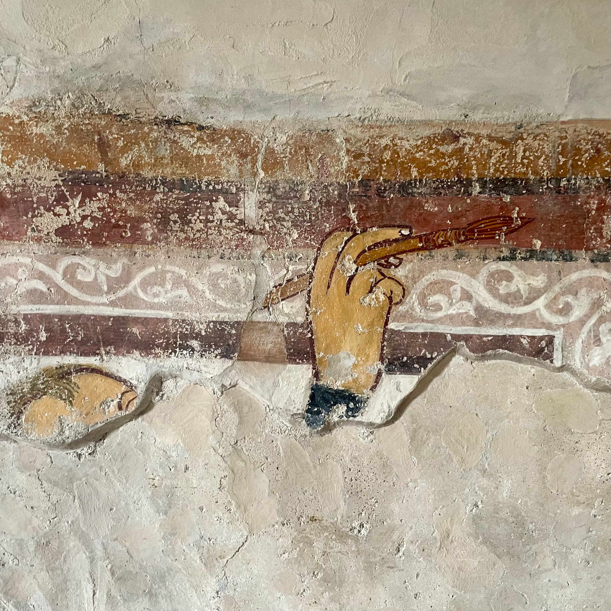 Nachdem wir im bisher sehr guten Hotel Chavalatsch eingecheckt und etwas erfrischt waren, gingen wir noch die Kirche St. Johann ansehen, was noch eine sehr gute Empfehlung vom Chef aus dem B&B von heute Morgen war. Die Kirche ist aus dem 9. Jhd., und hat eine ganz besondere Atmosphäre. Wenn wir nicht schon verheiratet wären/ hier in der Nähe wohnten, ich würde was darin feiern wollen. 😇 Sie enthält noch einige alte und renovierte Fresken und ein kleines Museum mit Funden hier aus dem Ort.