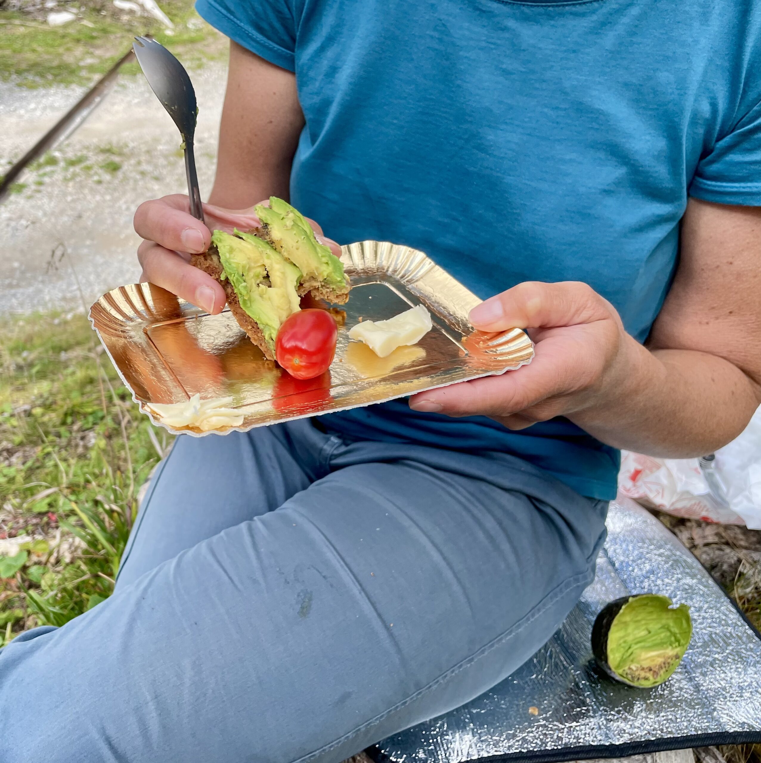 Die folgende Mittagspause war eine der nobelsten bisher: Britta saß auf einem silbernem Kissen und aß von einem goldenen Teller 👸🏽.