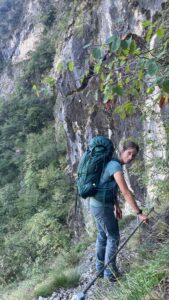 Auf dem Weg vom Rifugio herunter erklärte Britta allen Entgegenkommenden, dass es 30 Minuten bis dahin dauern würde.