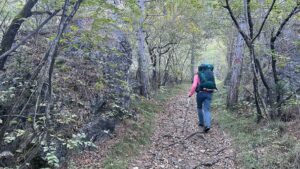 Als wir gerade in die Via Salenghi abgebogen waren, bemerkte Britta, dass ihre Stöcke zurück geblieben waren. Zum Glück war die Vermieterin/Künstlerin zu Hause und ließ Britta noch mal rein.