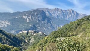 Auf dem ‚Sentiero dell‘Arte‘ kamen wir durch ein fast schon bizarres Gelände mit lauter großen und riesigen Bouldern, die offenbar in den letzten Jahrzehnten oder Jahrhunderten von der darüber aufragenden Felswand abgebrochen waren. Vorbei am bewohnten und etwas abweisenden Castel Pietra und einigen Wasserfällen kamen wir unterhalb des beeindruckenden Castel Beseno vorbei. Der Rio Cavallo ist dort direkt erreichbar und wunderschön (weiter oben ist der Fluss so tief und eng eingeschnitten, dass die Wege weit oberhalb verlaufen).