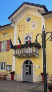 In Mezzomonte („Mittemperg“ auf dem alternativen Ortsschild) führt der Wanderweg durch etwas abenteuerliche Unterführungen unter der Hauptstraße durch und wir überlegten gerade noch die nächste Serpentine auf dieser Straße zu gehen, als uns eine Passantin den richtigen Weg nach Folgaria zeigte.