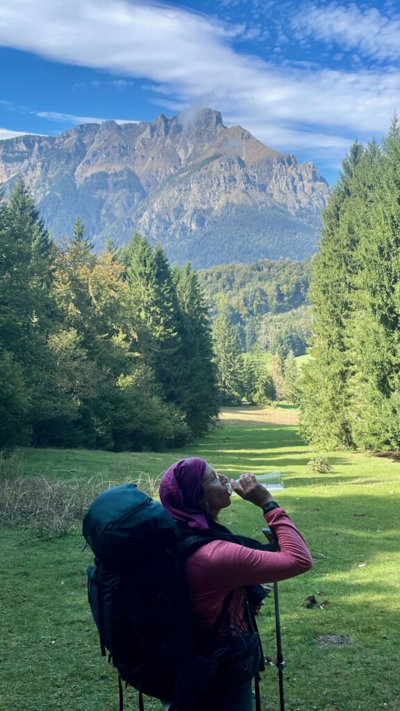 Kurz vor Folgaria trafen wir erst zwei Ferrarifahrer in ihrem Gefährt, mit dem sie dann ohrenbetäubend davondonnerten und einen sehr alten, wohlgestylten Mann, der sich darüber sehr aufregte. Ich stimmte ihm zu und äußerte in Gesten meine Meinung über eventuellen Kompensationsbedarf bei solchen Davondonnerern. 🤷🏼♂️
