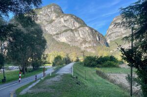Das passierte erst auf der Brücke über den Torrente Grigno, wo wir feststellen konnten, dass über Damüls als ‚Hausberg’ wohl die Mittagsspitze steht, über Grigno aber die Mittagsritze, durch die die Sonne zum Glück auf uns schien.
