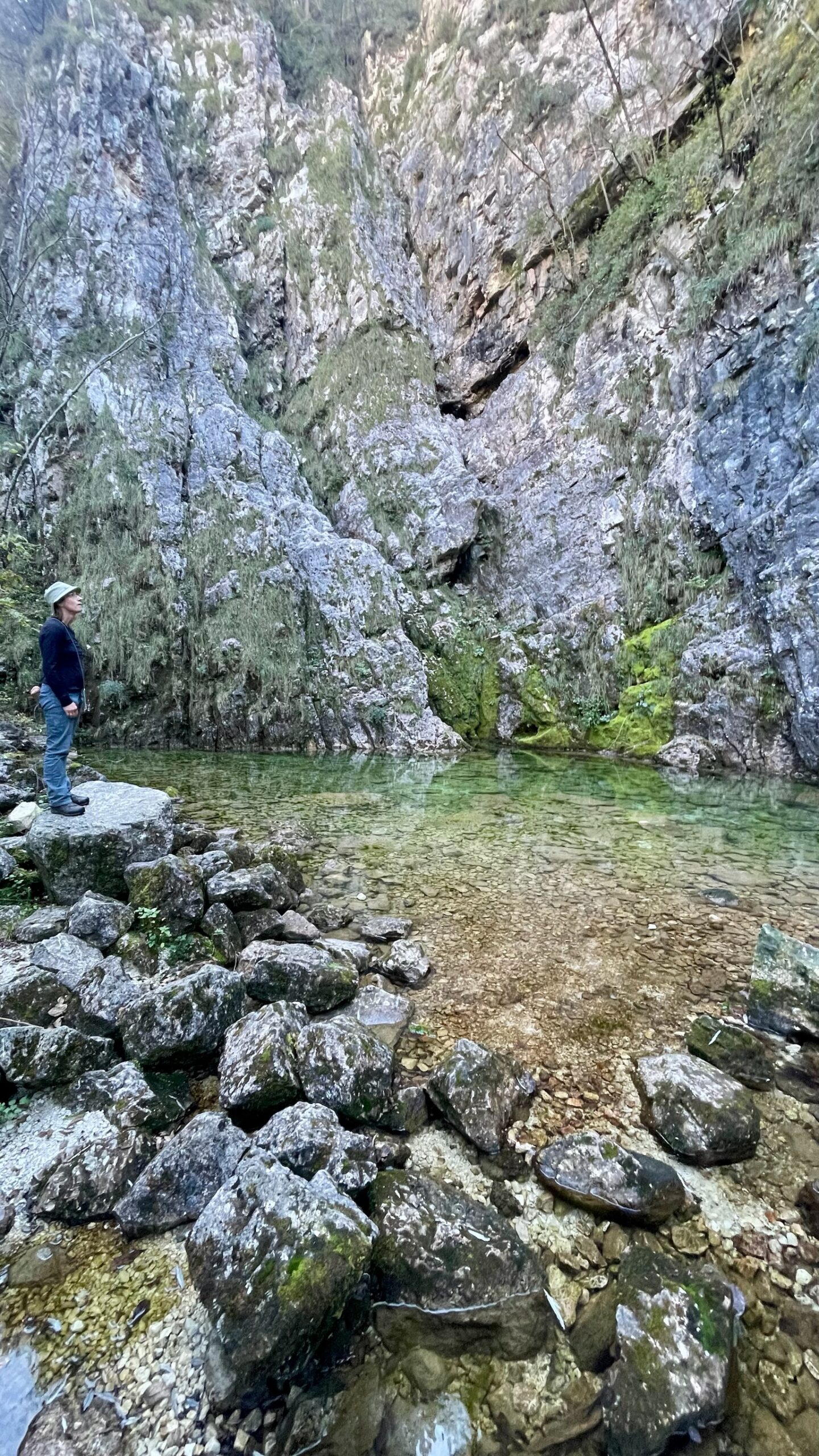 Im Schatten des Berges in dem wir nun waren wurde es schon ziemlich kühl, so dass wir den äußerst malerischen Quellteich an der Felswand nur kurz ansahen, aber nicht auf einer der unglaublich vielen Picknickbänke dort Mittagspause machten, obwohl wir schon etwas hungrig waren.