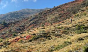 Vielleicht weil sie schon nicht mehr ganz oben weiden, waren die Kühe heute in dichteren Herden und mehrmals auf unserem Weg zu finden: einmal gingen sie beiseite, einmal wir.
