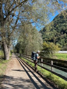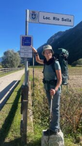 Hier im Tal geht es wenig bergauf und bergab, immer neben den Fluss Brenta, der Schnellstraße und der Eisenbahn entlang. Wir sahen, dass hauptsächlich Wein, Äpfel und Mais angebaut werden. Es war sehr beeindruckend, die steilen und schroffen Berge mal von unten zu betrachten und wir genossen, dass es hier unten im Tal (etwa 400 Meter über Normalnull) wärmer als oben (gestern etwa 1500 Meter über NN) in den Bergen ist.